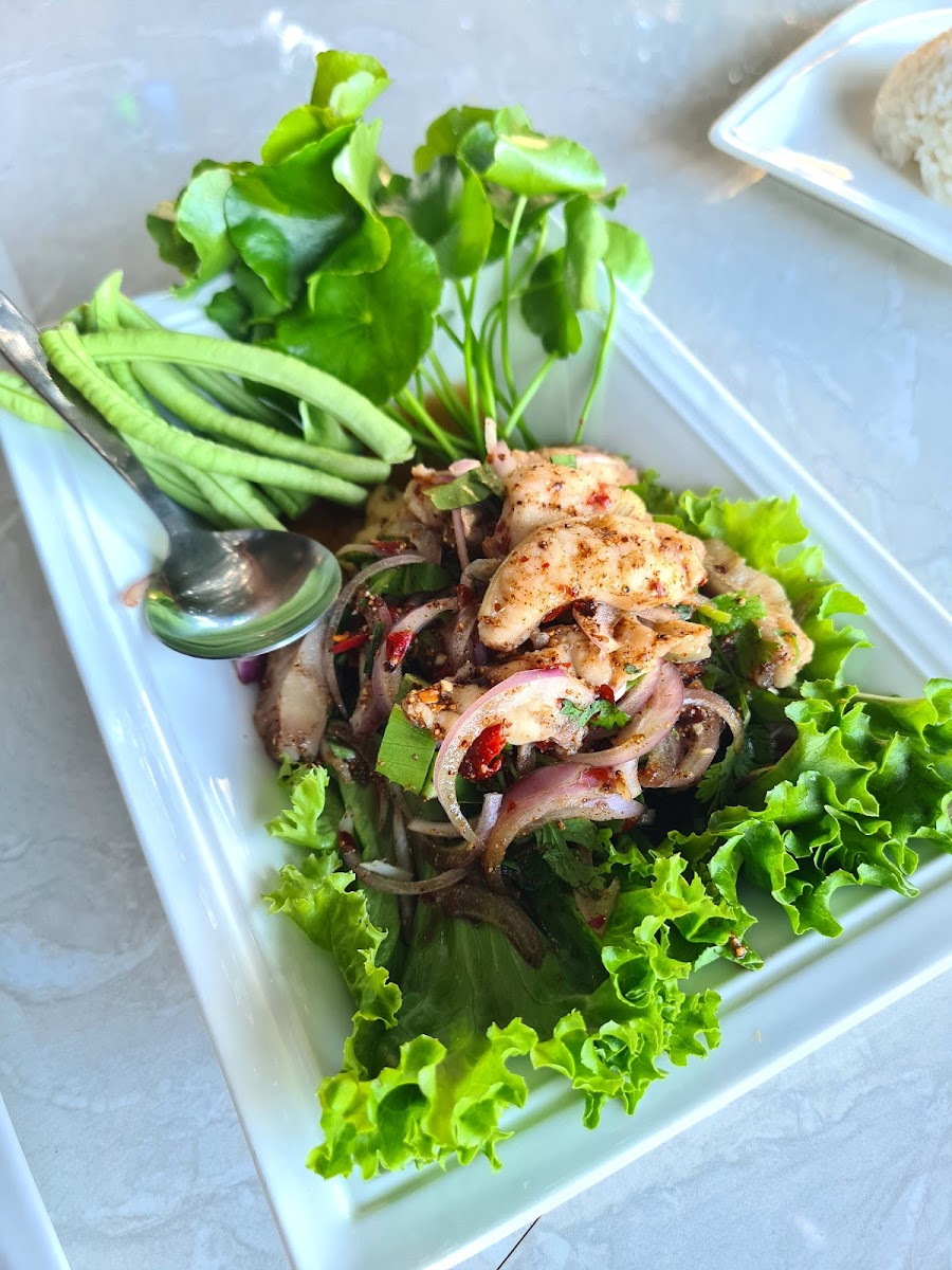 As you approach the café, the large sign catches your eye, welcoming you into a space that resonates with tranquility. The restaurant boasts a stunning view alongside pristine waters, offering a refreshing breeze that enhances your dining experience. Step inside, and the thoughtful design reflects a hint of Northern Thai aesthetics, where every corner offers opportunities for delightful photographs.